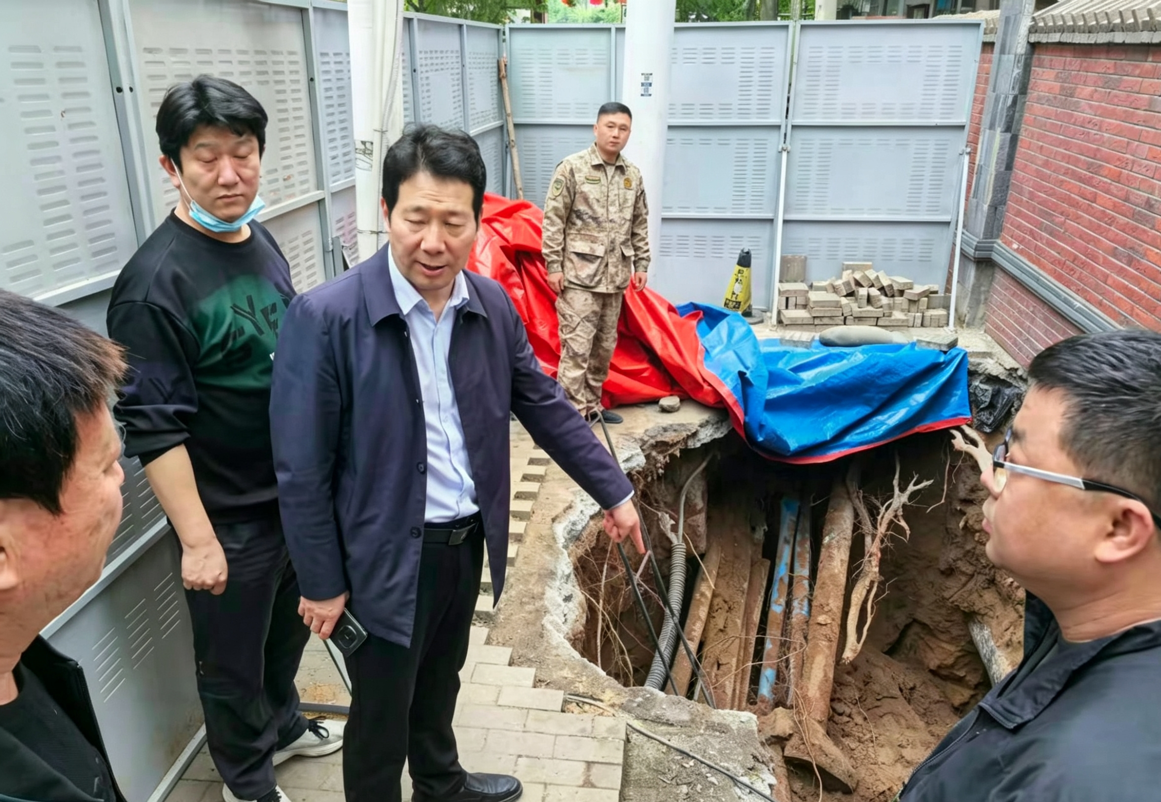 2026年4月16日,我办接到棉纺路街道办事处关于百花路出现地面塌陷的情况通报后,办党组书记、主任刘志伟第一时间调度早期人防工程专业施工队伍,火速赶赴现场开展隐患排查。在塌陷责任暂未明确的情况下,我办坚持把群众安全放在首位,不等不靠、主动作为,迅速开展隐患排查与应急处置工作,当即敲定应急处置方案,第一时间划定安全警戒区域、设置警示标识,坚决防范次生安全事故发生。